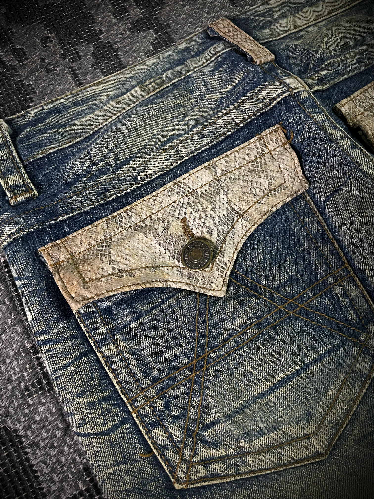 *The item features a faux snakeskin-like texture with a slightly sticky feel due to age or finish, ideal for those who appreciate character and patina in vintage condition.*