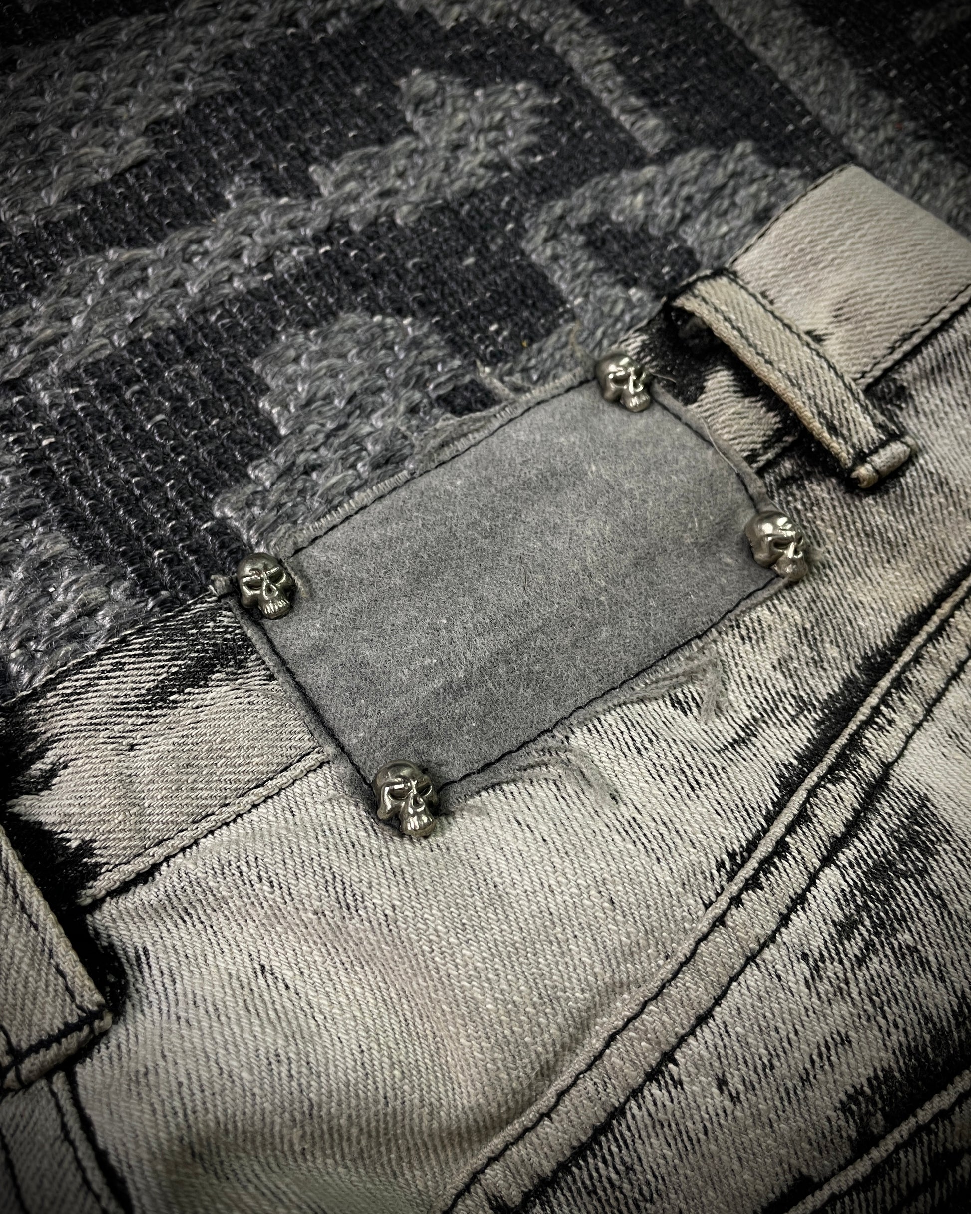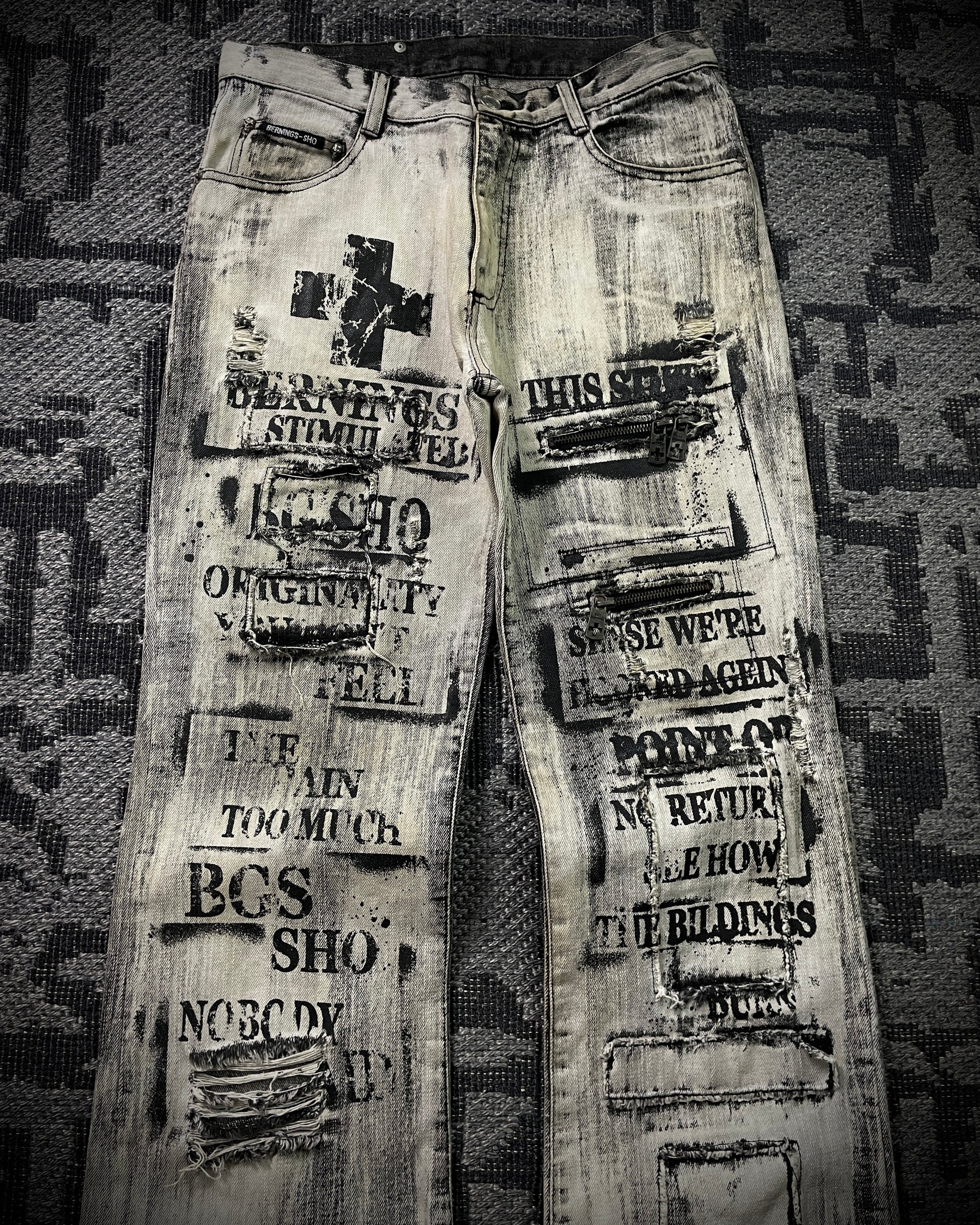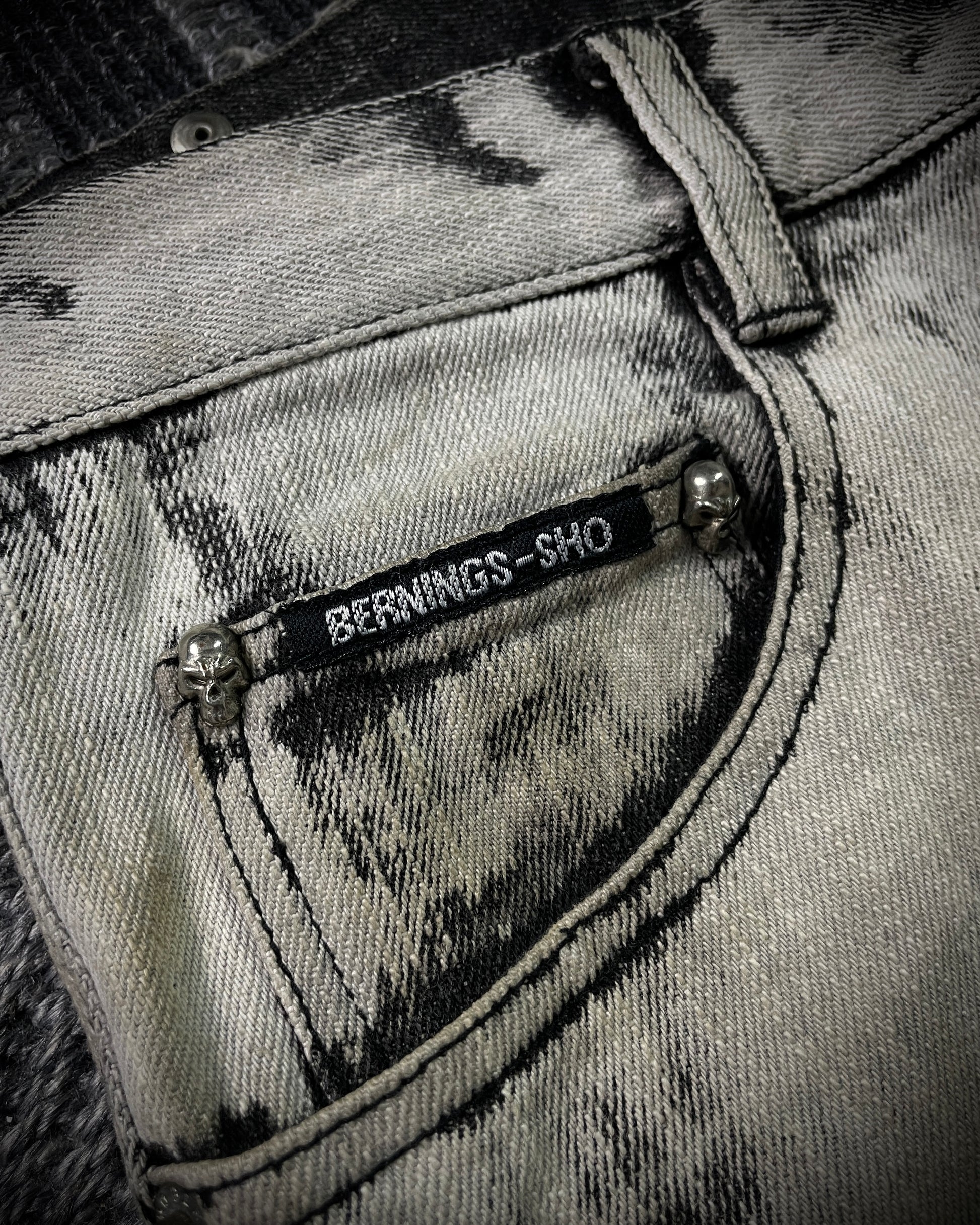 Bernings Sho Acid Wash Patchwork Multi Zip Poem Flared Jeans