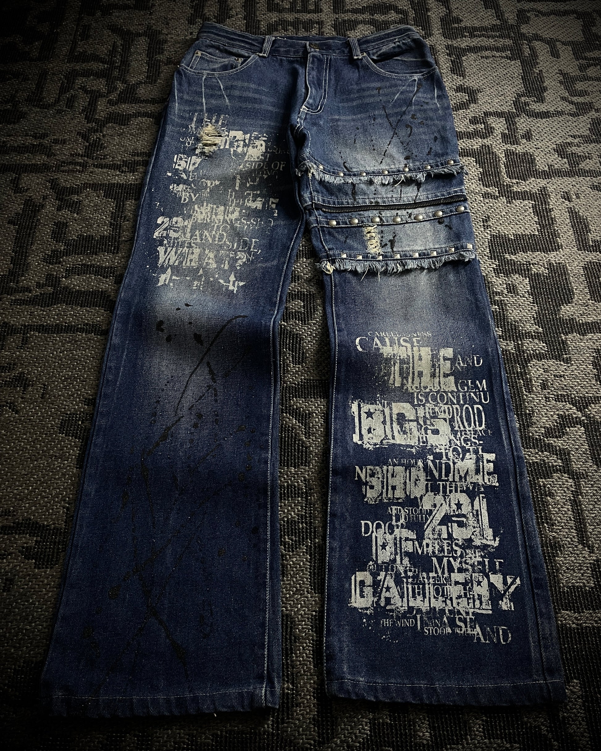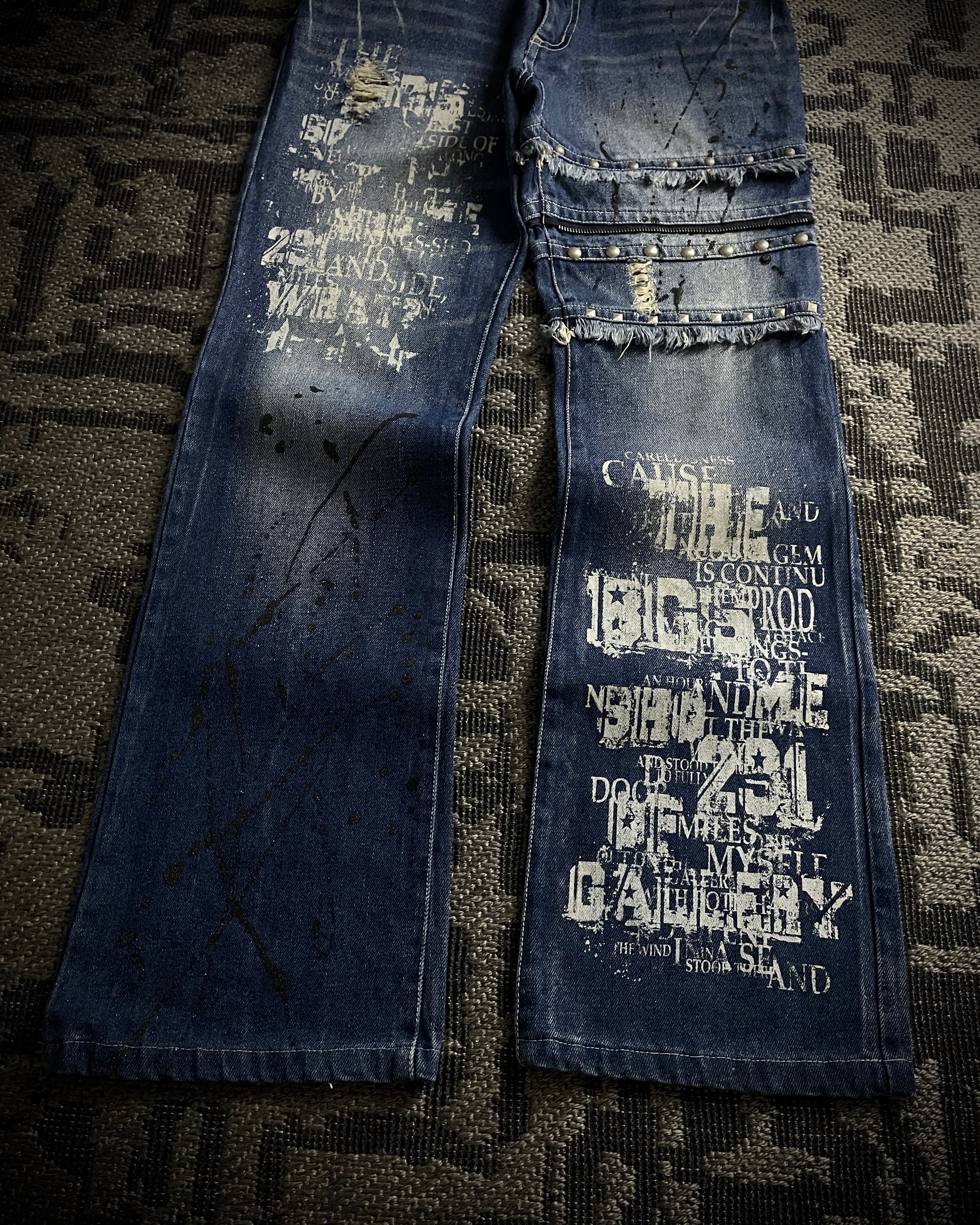 Bernings Sho Distressed Poem Studded Bootcut Denim