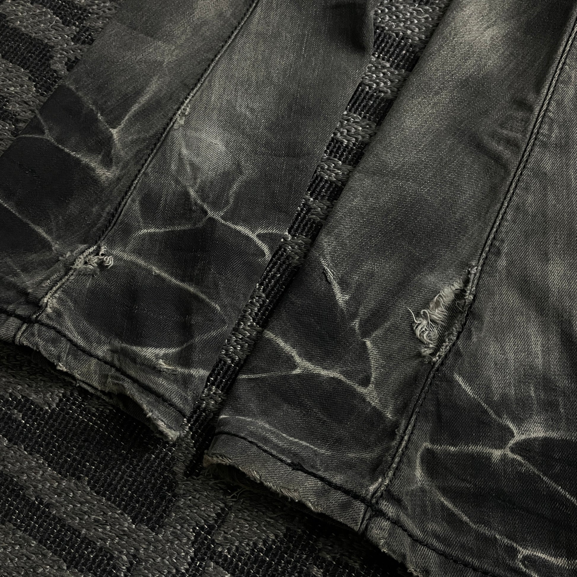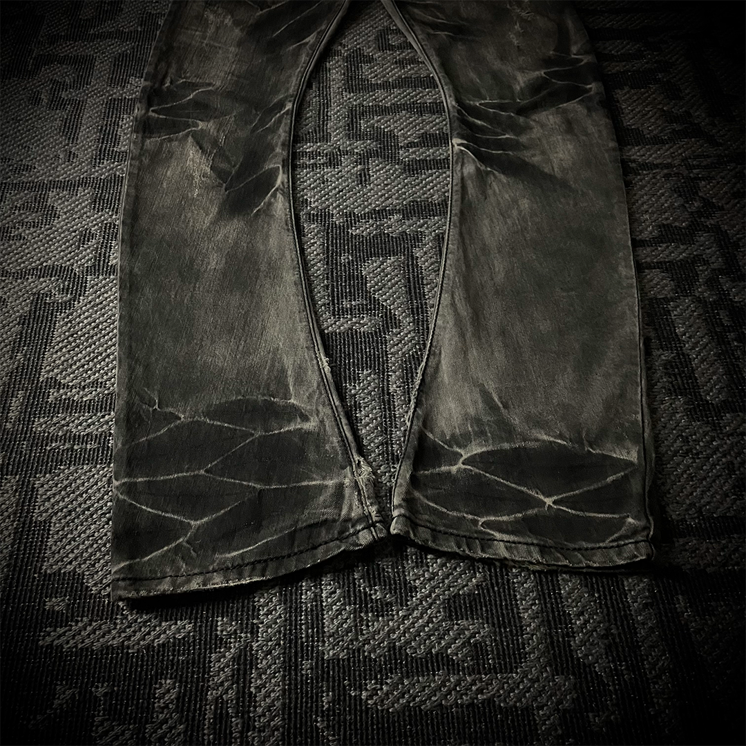 These Buffalo Bobs claw mark J-cut flared jeans gray and black tone heavily washed with beautiful claw marks. They’re some torn but overall still cool.