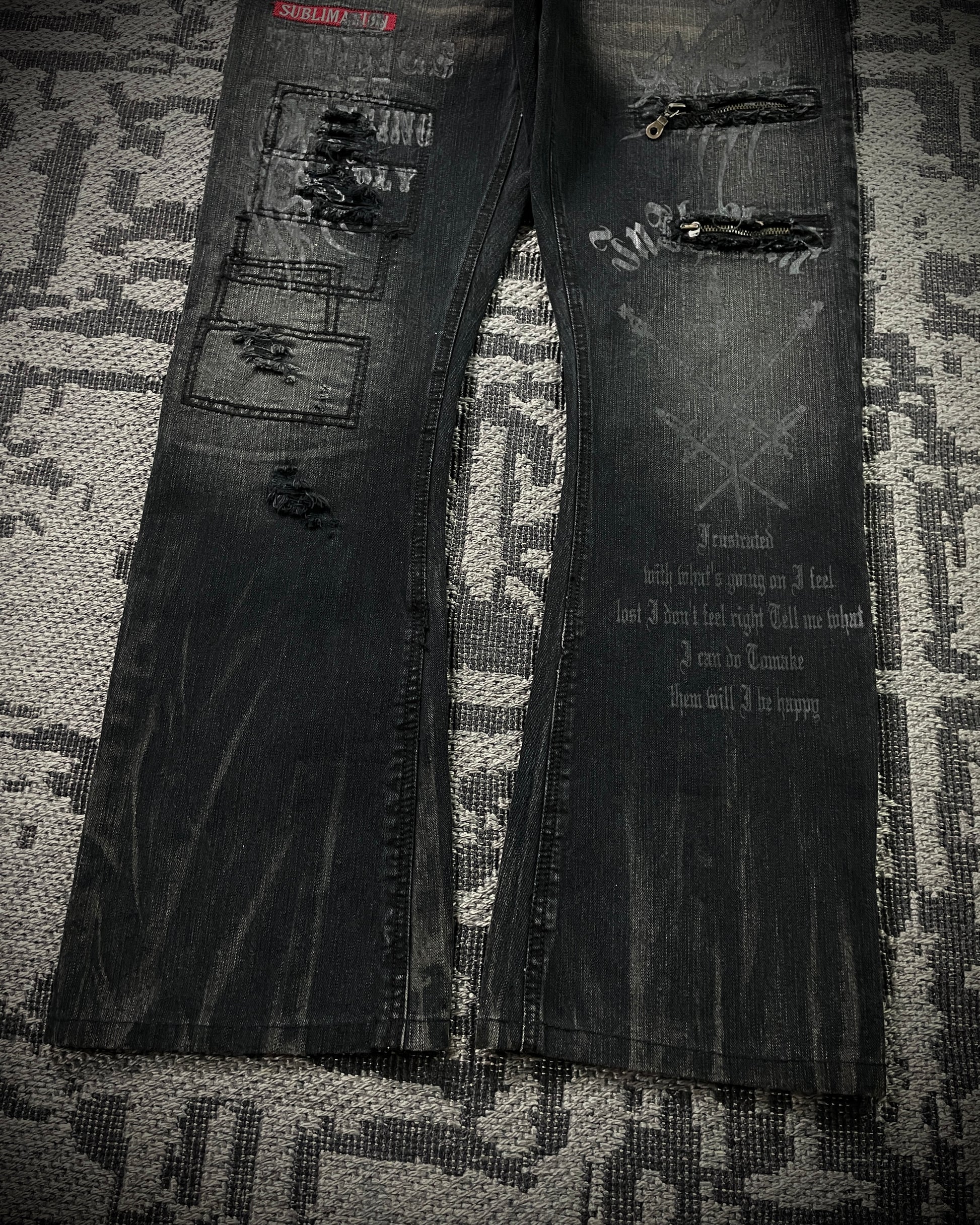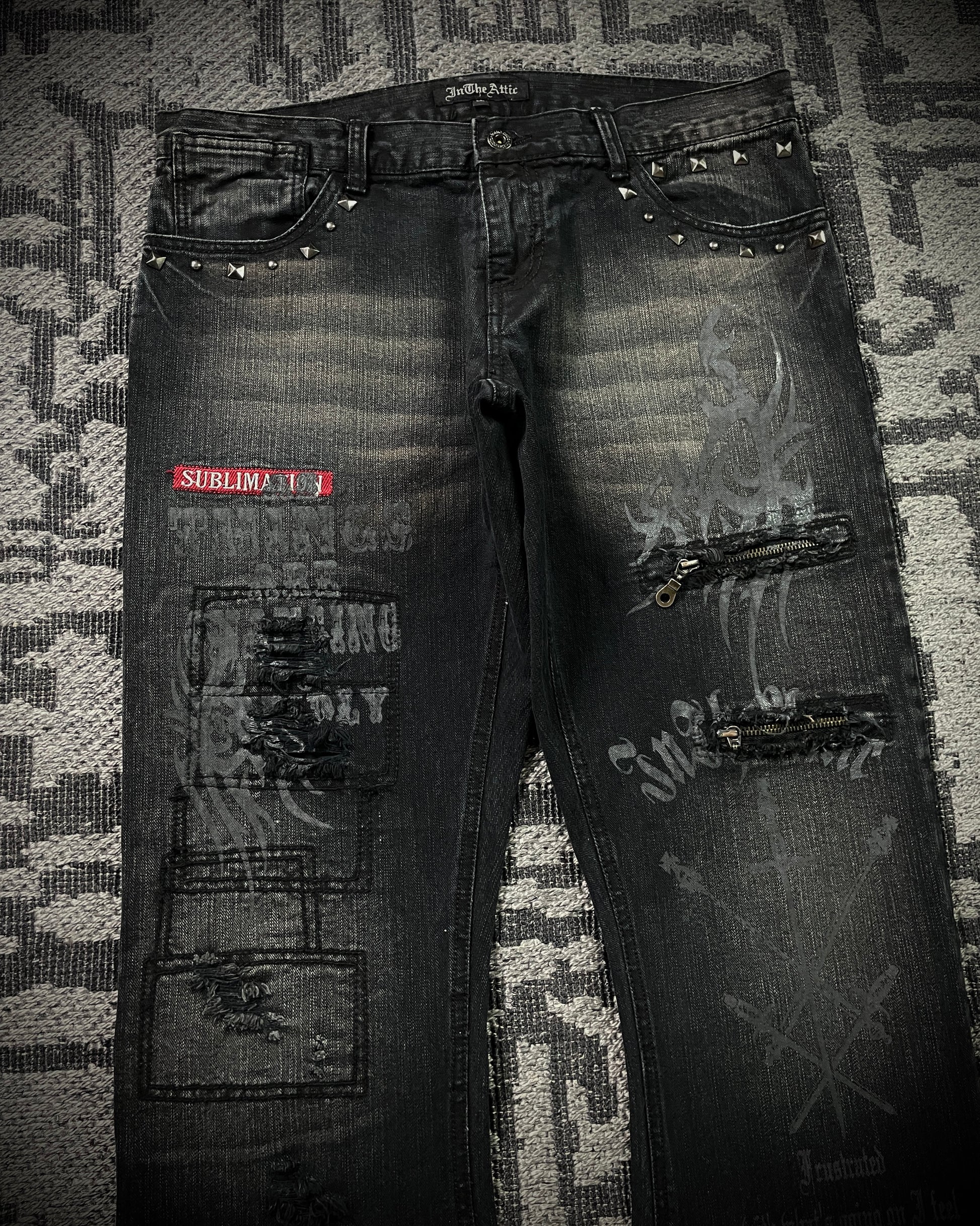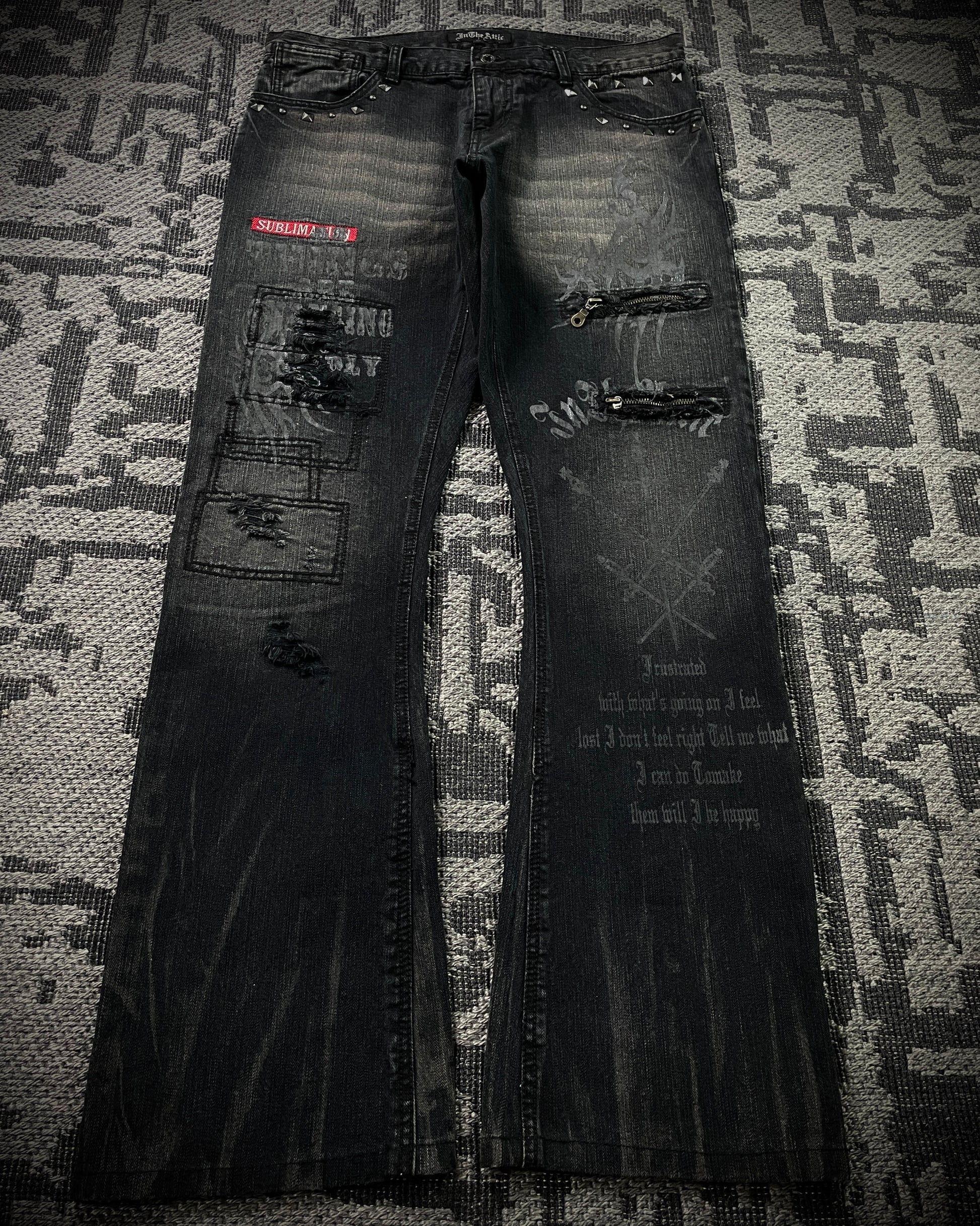 In The Attic Patchwork Studded Punk Bootcut Jeans