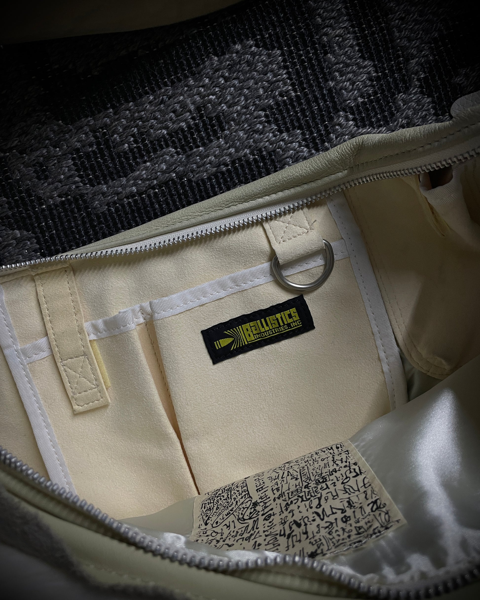 The interior bears a Ballistics Industries Inc. label, a Japanese manufacturer often seen in high-quality pieces from the early 2000s. Overall, the bag is in great condition with only minor signs of use, as shown in the pictures.