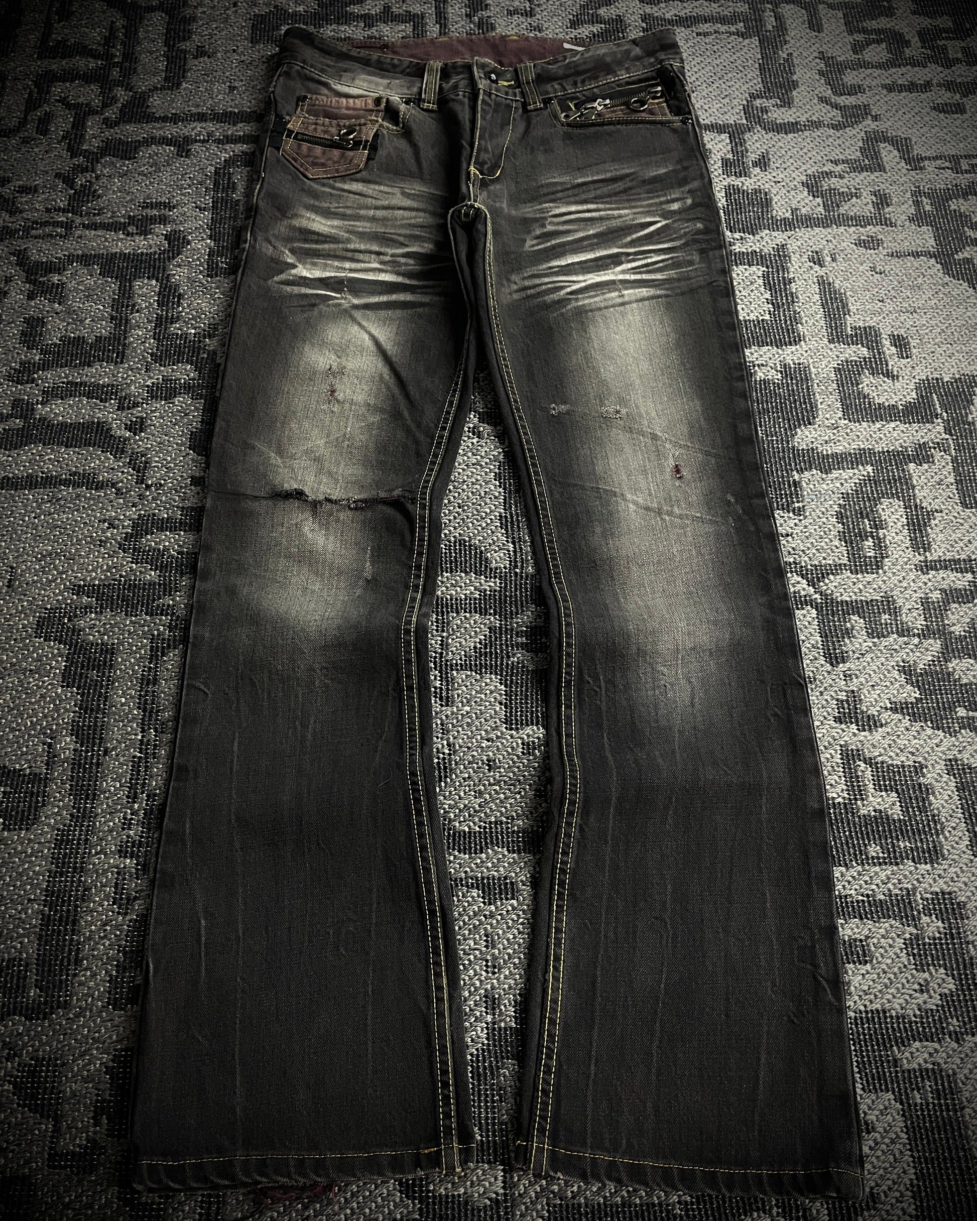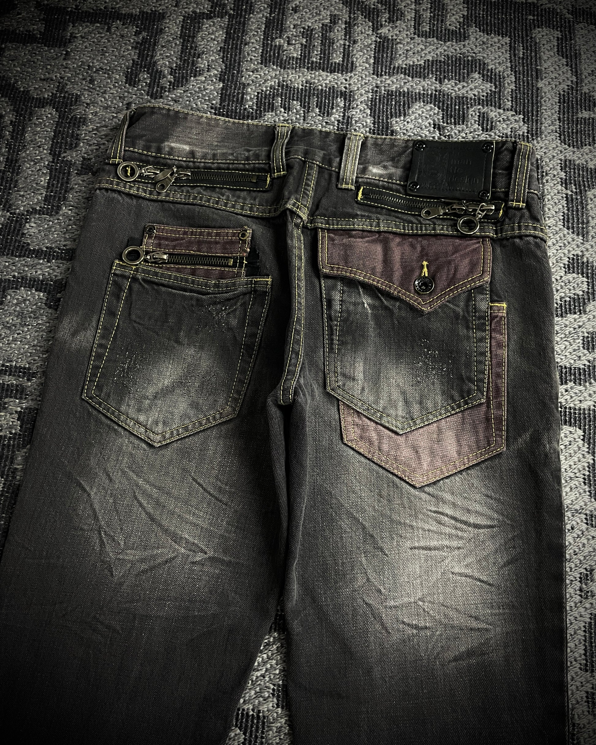 Semantic Design Multi Zip Whiskered Bootcut Jeans