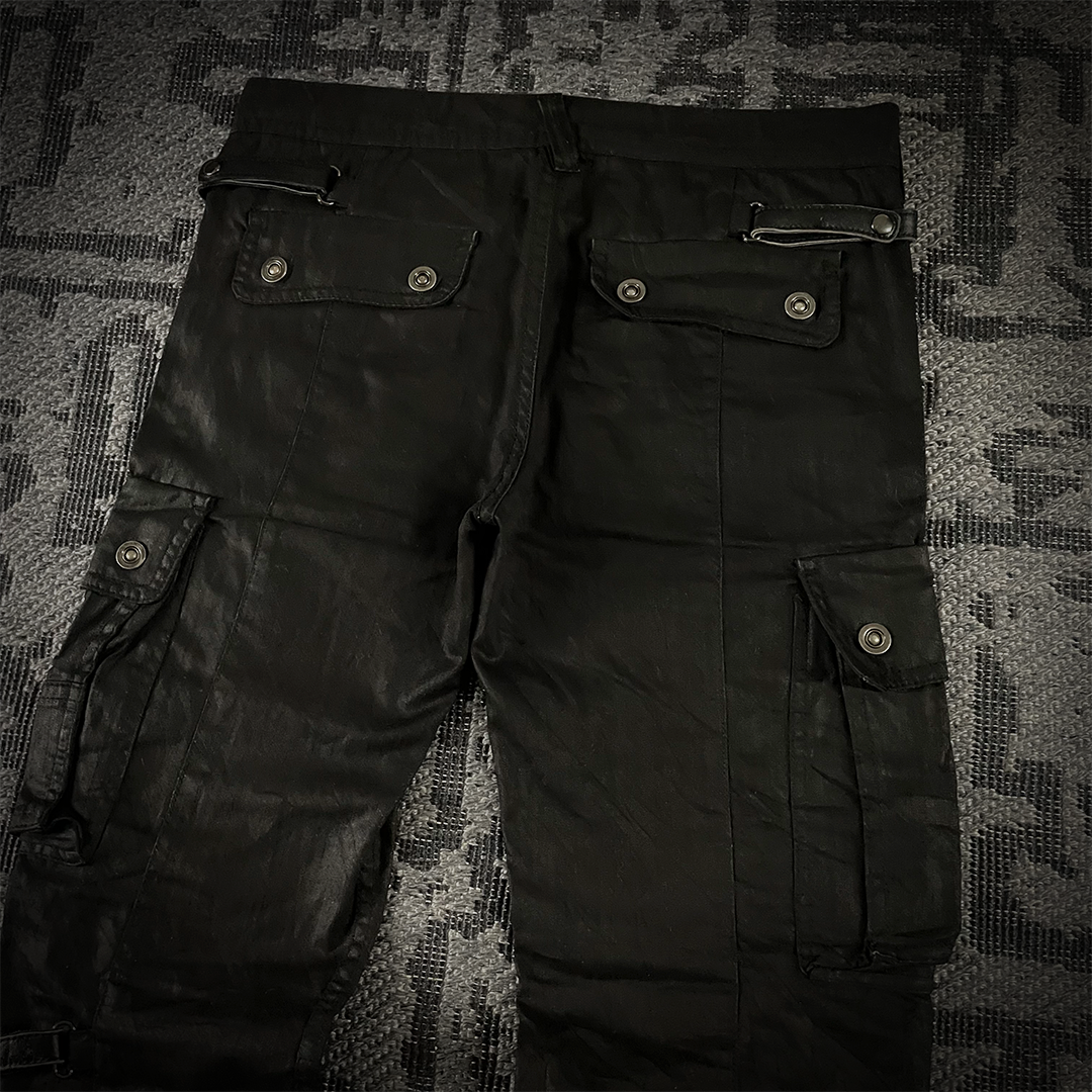 Tornado Mart Tactical Foil Waxed Cargo Flared Pants