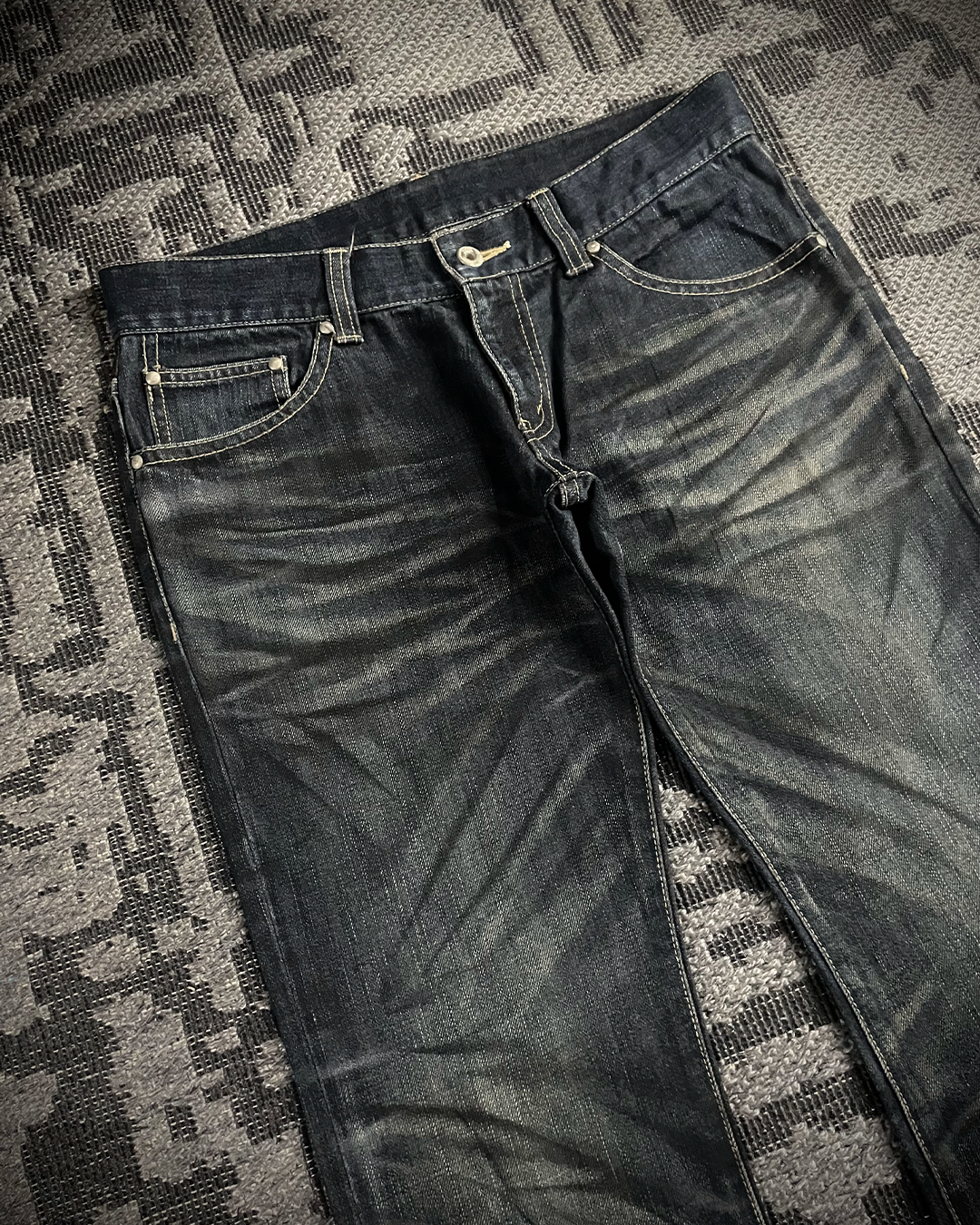 Tornado Mart Whiskered Blue black curve leg Boot Cut Jeans