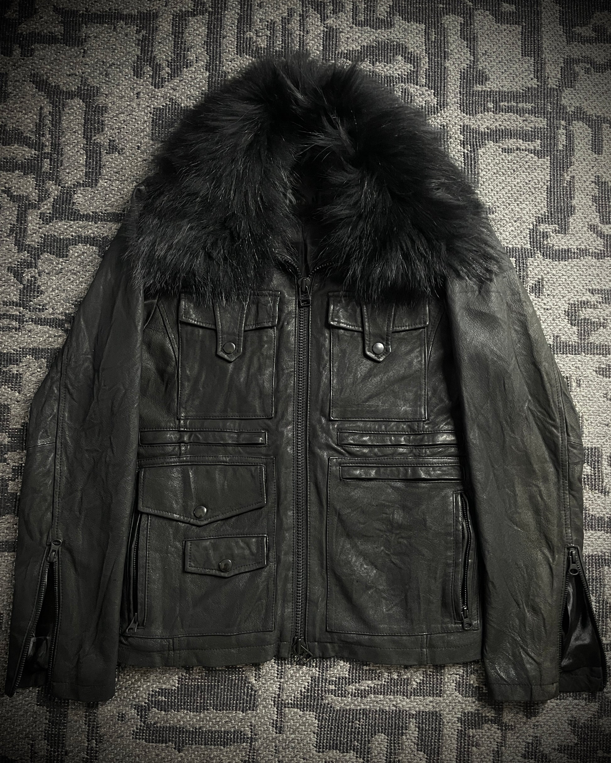 CUSTOM CULTURE Real Fur Multi-Pocket Leather Jacket